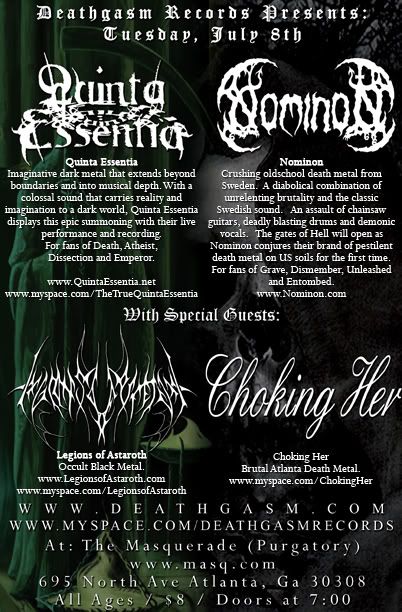 Re: NOMINON/QUINTA ESSENTIA/LEGIONS OF ASTAROTH/CHOKING HER